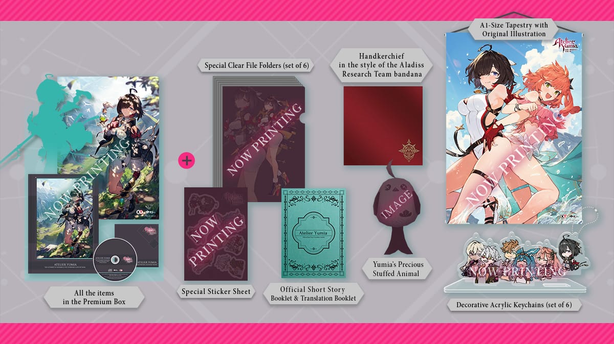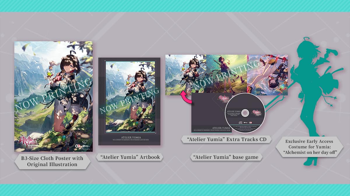 Atelier Yumia propose plusieurs bonus de précommande : un costume pour Yumia « L’acrobate des souvenirs », un costume pour Flammi « L’objet flottant des souvenirs » et l’équipement exclusif « Bande pour entraînement intensif ».