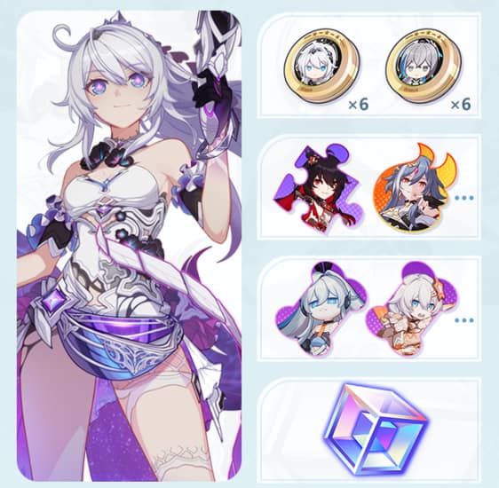 - Des Fragments d’EFV (Klein, Sirin, Elfe Elysia, Lame Durandal, Projet lapine, Kiana Kaslana) ;