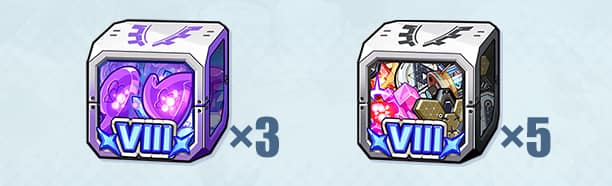 - 3 boîtes de sélection offrant chacune au choix, 5 tickets de Ravitaillement d’armure de combat, 5 tickets de Ravitaillement d’équipement, ou 1 200 cristaux.