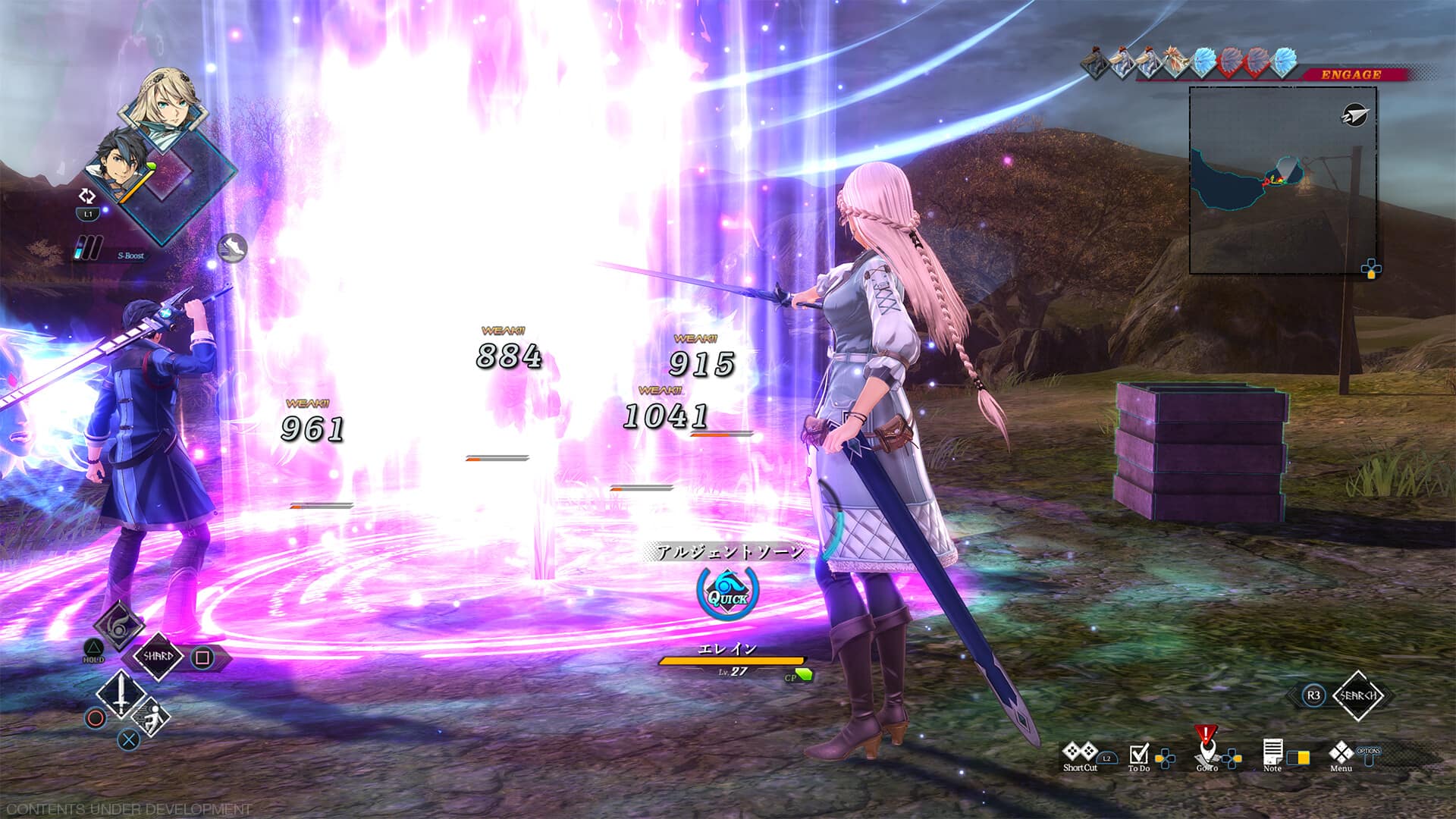 Les mécaniques de combat seront similaires au précédent jeu, avec quelques améliorations. En effectuant une esquive parfaire, nous pourrons essayer d’enclencher la Cross charge. Pour cela, il faudra appuyer sur la touche qui apparaît à l’écran. Et en cas de réussite, un autre membre de l’équipe lancera une attaque chargée. De plus celui-ci profitera d’un bonus d’attaque temporaire. Nous pourrons aussi lancer une chaine EX en remplissant des conditions spécifiques. Et en attaquant normalement ou par craft un ennemi assommé, cela lancera la chaine EX. Les membres de l’équipe effectueront ainsi une attaque simultanée qui causera de lourds dégâts.