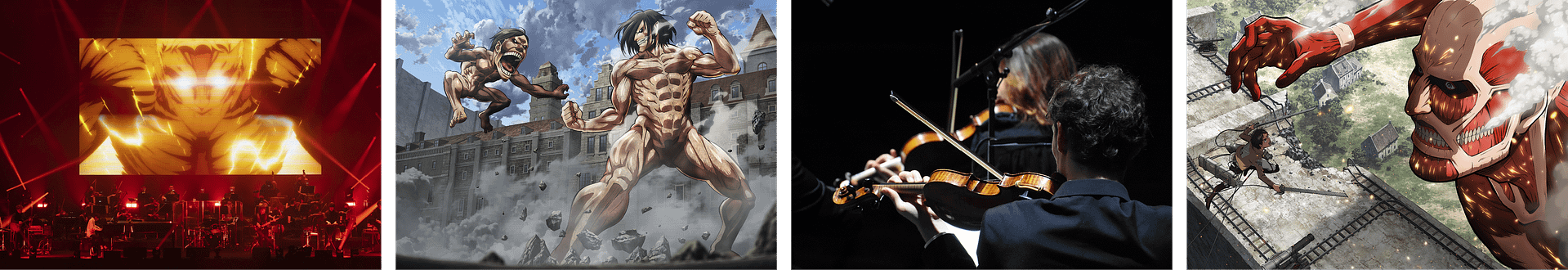 Ces concerts événements nommés « L’Attaque des Titans – Beyond the Walls World Tour – » raviront les fans de l’anime. Ils proposeront un mélange de musiques et projections vidéos. Vous pourrez y écouter un orchestre symphonique interprété de la musique rock, mais aussi orchestrale, avec un accompagnement vocal de haute qualité. La bande originale composée par Hiroyuki Sawano et Kohta Yamamoto sera mise à l’honneur avec des morceaux marquants tels que at’aek ON taitn, counter・attack-mankind, Apple Seed et Footsteps of Doom.