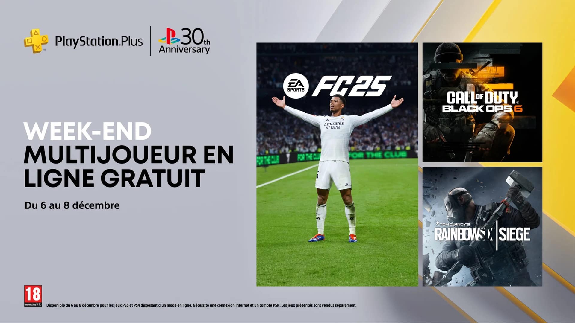 Effectivement du vendredi 6 au dimanche 8 décembre, les joueurs PlayStation 4 et PlayStation 5 pourront jouer en ligne gratuitement, sans être abonné au PlayStation Plus. Profitez de cette occasion pour découvrir les modes en ligne de vos jeux préférés ou pour récupérer les trophées auxquels vous ne pouviez pas accéder.