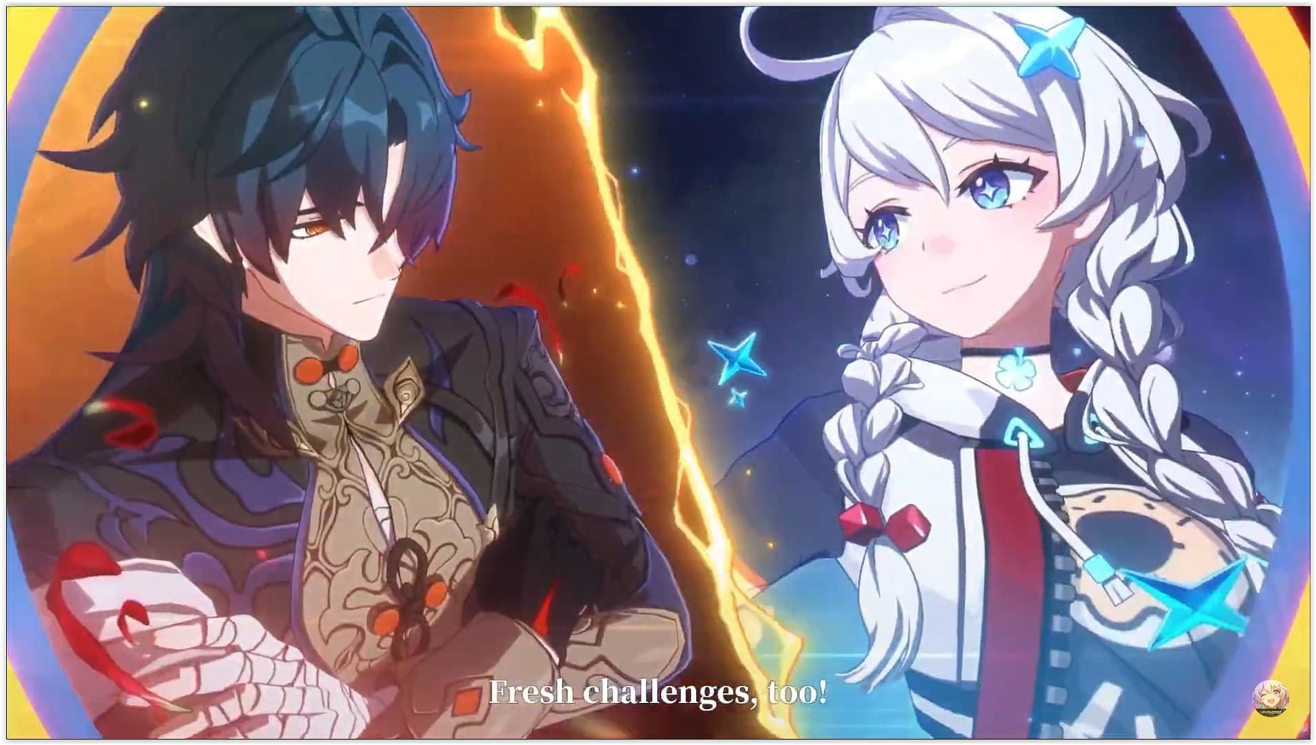 Lors de cette annonce, nous avons pu apercevoir Kiana Kaslana de Honkai Impact 3rd suivre une créature semblable à un chien. Et elle tombe sur Blade de Honkai : Star Rail, qui est accompagné d’une autre créature ressemblant quelque peu à un loup. Les deux se lancent alors un défi !