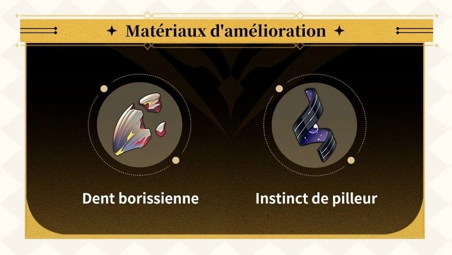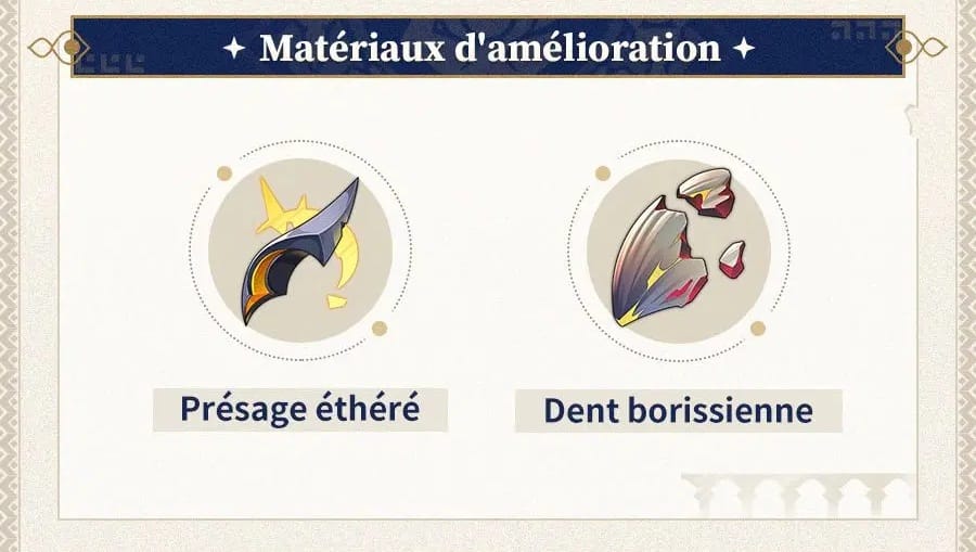 Augmente les chances de coup critique du porteur de 16%. Si le maximum de points de compétence de l’équipe est supérieur ou égal à 6 en entrant en combat, augmente l’attaque du porteur de 40%. Après que le porteur a utilisé une compétence, augmente son attaque de 10%, cumulable jusqu’à 4 fois.