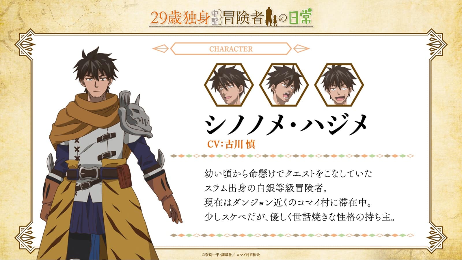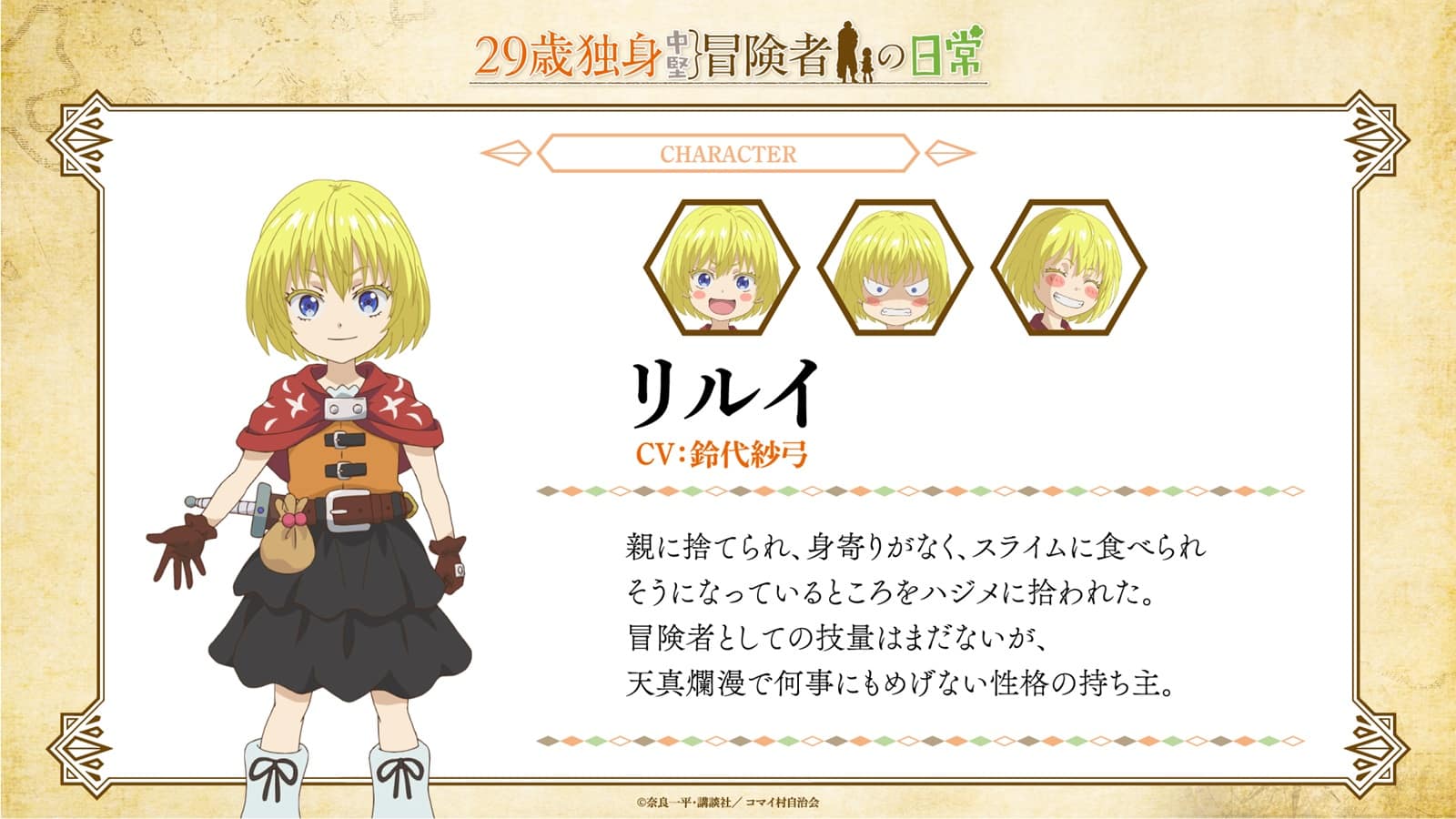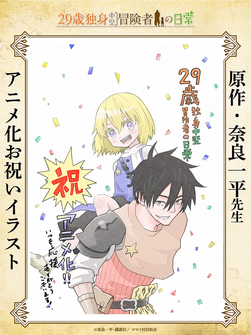 29-sai Dokushin Chūken Bōkensha no Nichijō, qu’on traduit non officiellement par « The Daily Life of a Single 29-Year-Old Adventurer », soit « La vie quotidienne d’un aventurier célibataire de 29 ans », est une série de manga de fantasy et comédie crée par Ippei Nara.