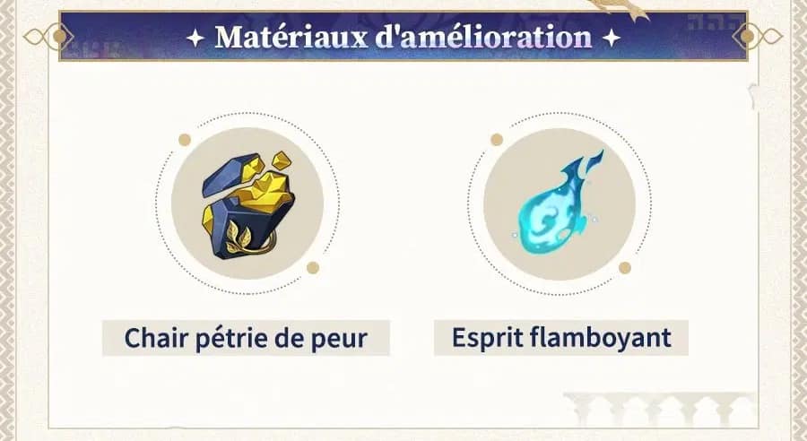 Augmente l’attaque du porteur de 64%. Après avoir utilisé un ultime pour attaquer, récupère 1 point de compétence. Lorsque le porteur utilise une compétence sur un personnage allié, augmente les dégâts de compétences infligés par la cible de 54% pendant 3 tours.