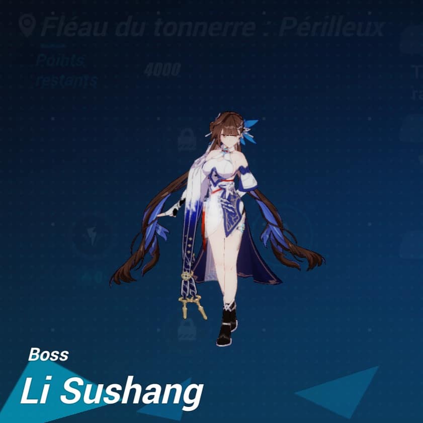 Stratégie : Avec Kiana (IMG – Herrscher de la finalité), prenez d’abord le contrôle de Bronya. Lancez sa compétence d’arme, et changez de forme pour utiliser son attaque chargée dès que vous apercevez ne serait que légèrement le sommet du boss. Ensuite, enchaînez avec son ultime, et passez à Kiana pour utiliser sa compétence d’arme, puis son attaque combo. Passez maintenant à Mei, utilisez sa double attaque combo et activez l’ultime pour revenir sur Kiana. De là, vous pouvez activer la compétence d’anneau astral, et réalisez l’enchaînement suivant à deux reprises, compétence d’arme suivi de l’attaque combo.