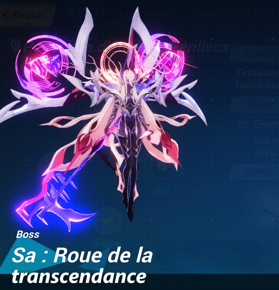 Stratégie : Avec Senadina, utilisez la compétence d’attaque dès que le boss apparaît. Passez ensuite à Kiana avec le QTE, et utilisez l’attaque combo. Enchaînez avec le QTE de Vita, et activez immédiatement son autre forme. De là, utilisez la compétence d’attaque, pour pouvoir effectuer l’attaque combo. Vous pouvez maintenant repasser à Senadina via le QTE. Réalisez une première attaque combo, utilisez l’ultime, puis esquivez pour pouvoir refaire l’attaque combo.