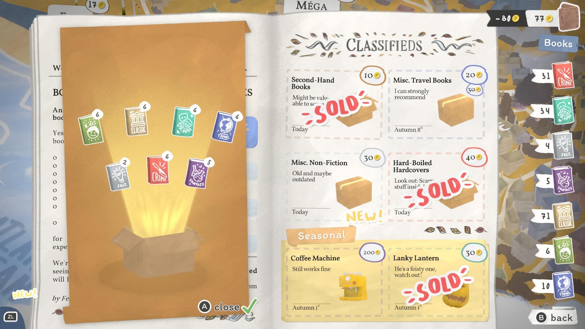 Remplissez votre petite librairie d’une variété de livres et d’objets, installez-la dans des lieux pittoresques et apprenez à connaître les habitants de Bouquainville.